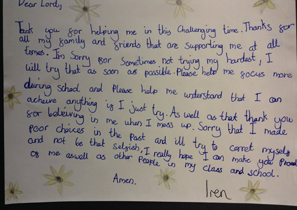 Let love abide here: Love of one another, love of life itself and the love of God.