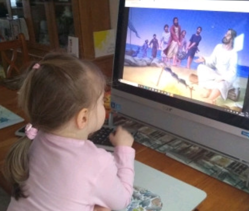 Nursery children watching the bible stories